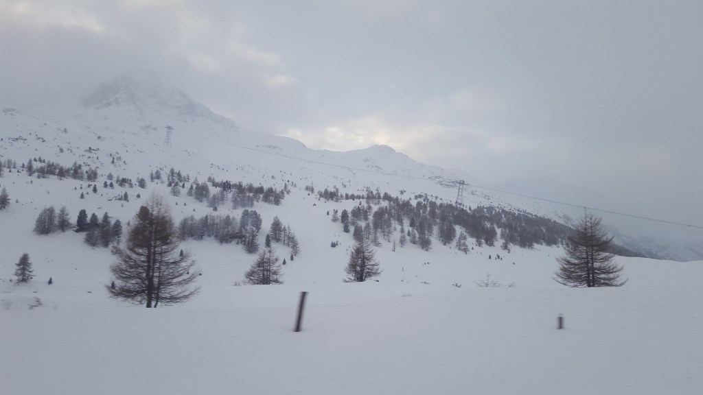 Then we progress further still into The Alps. There are no other buildings for what feels like a long time. We become one with the mountains. It’s just endless snowscape as far as the eye can see.